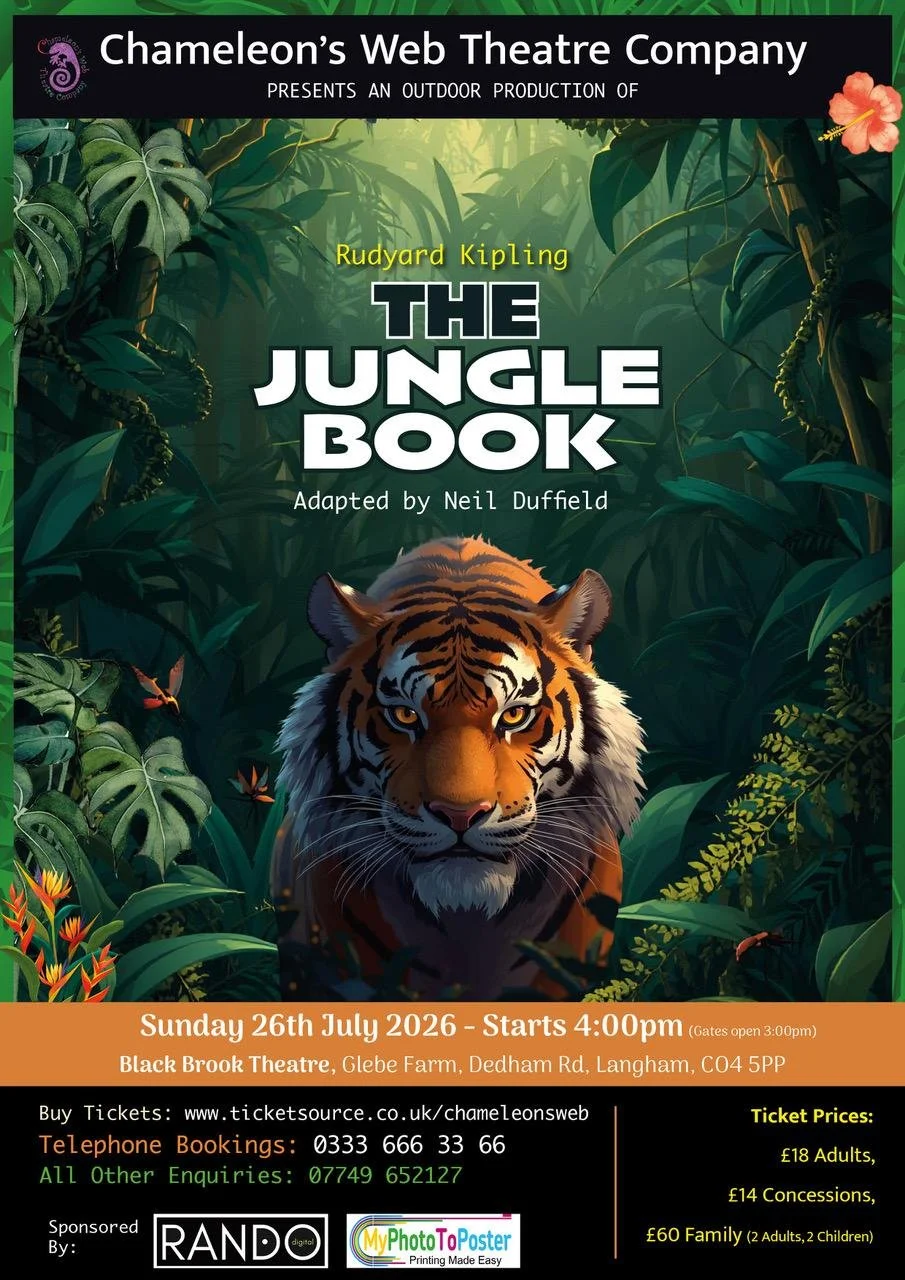 Join Chameleon's Web Theatre Company for their Summer outdoor show - Rudyard Kipling's The Jungle Book adapted by Neil Duffield